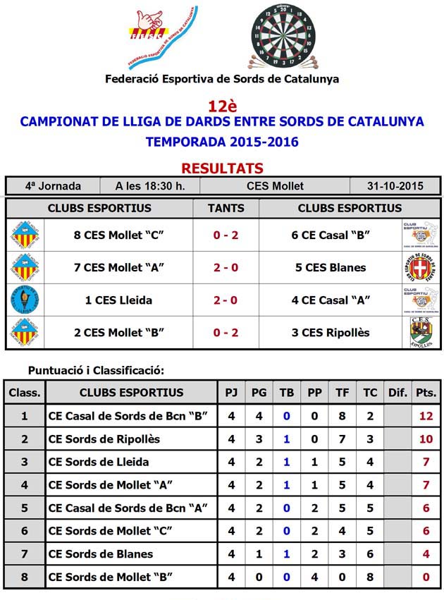 12è CAMPIONAT LLIGA DE DARDS ENTRE SORDS DE CATALUNYA - TEMPORADA 2014-2015