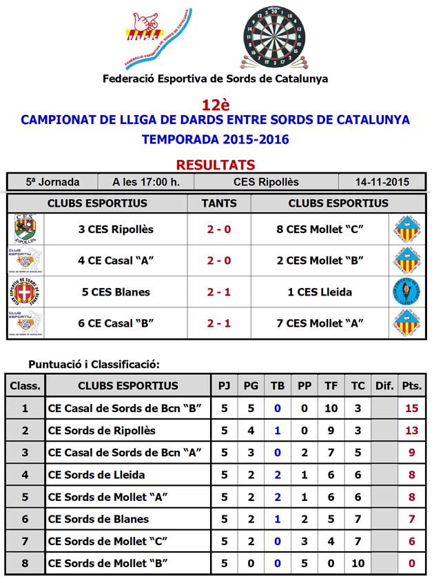12è CAMPIONAT LLIGA DE DARDS ENTRE SORDS DE CATALUNYA - TEMPORADA 2014-2015