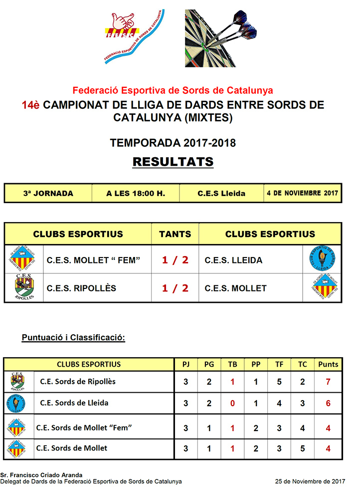14è CAMPIONAT LLIGA DE DARDS ENTRE SORDS DE CATALUNYA - TEMPORADA 2017-2018