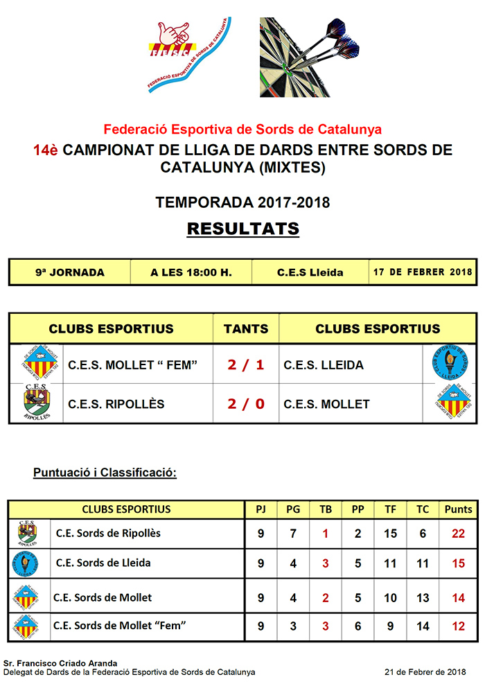 14è CAMPIONAT LLIGA DE DARDS ENTRE SORDS DE CATALUNYA - TEMPORADA 2017-2018