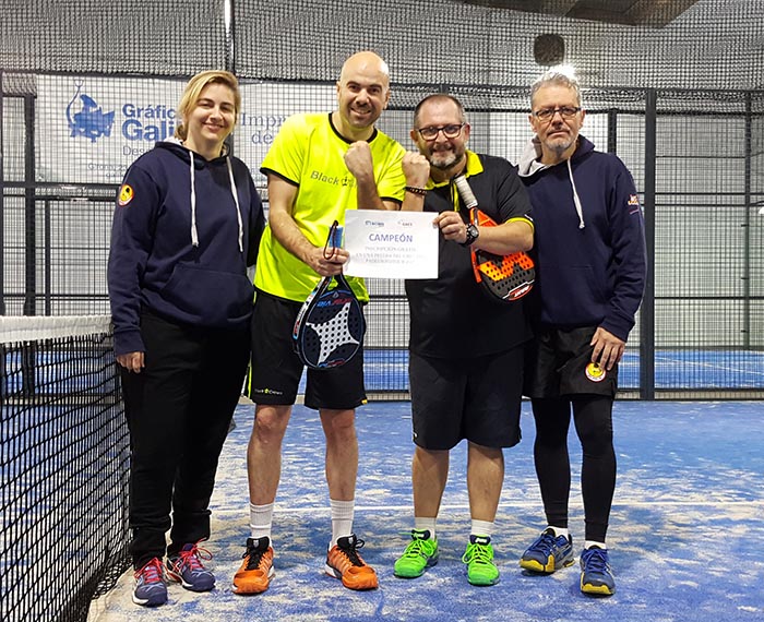 Campió, OSCAR ALOY i FCO. GARCIA amb els delegats de Padel de la FESC, M. VISA i X. CAÑADA |