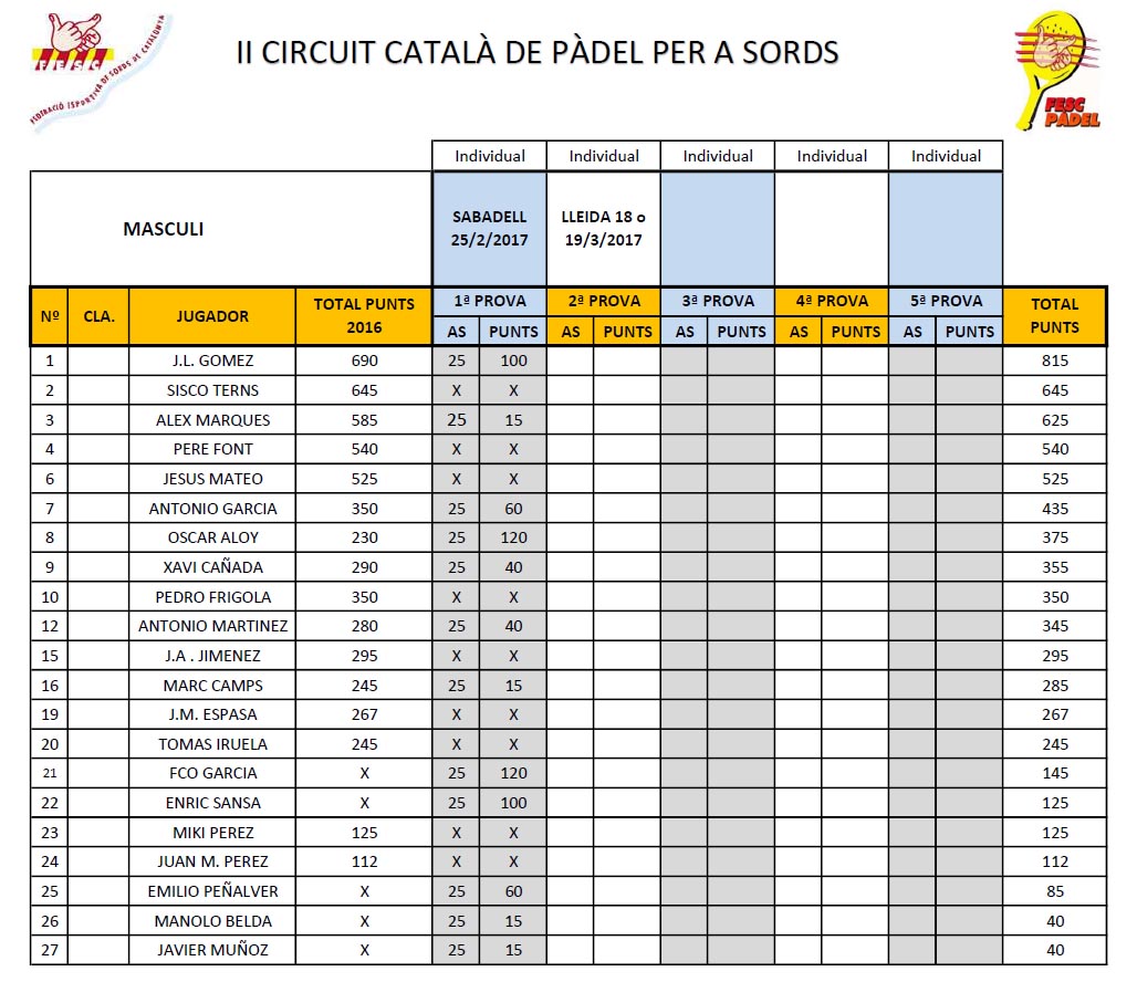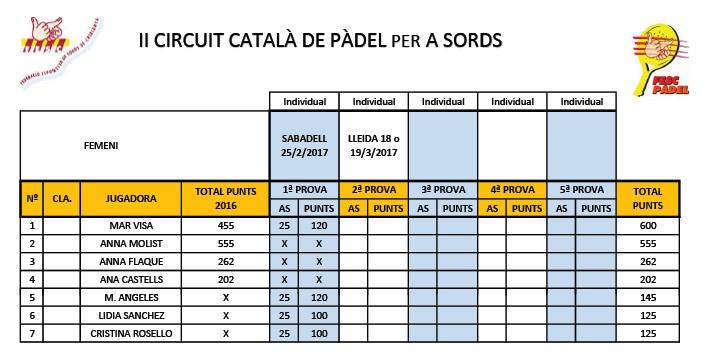 1ª PROVA DEL II CIRCUIT CATALÀ DE PÀDEL PER A SORDS |
