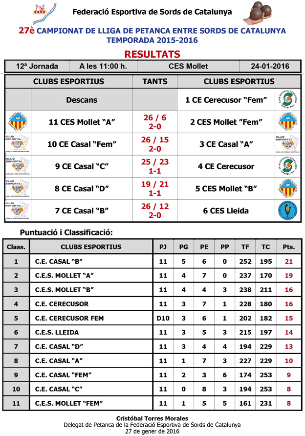 27è CAMPIONAT LLIGA DE PETANCA ENTRE SORDS DE CATALUNYA - TEMPORADA 2014-2015