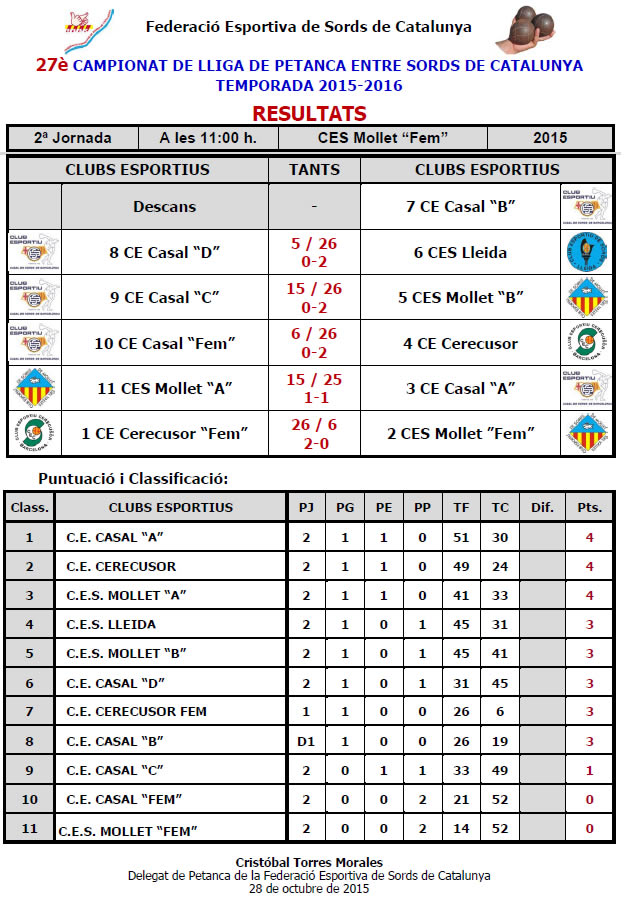 27è CAMPIONAT LLIGA DE PETANCA ENTRE SORDS DE CATALUNYA - TEMPORADA 2014-2015