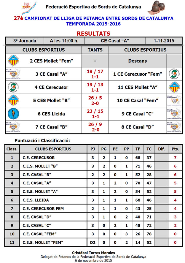 27è CAMPIONAT LLIGA DE PETANCA ENTRE SORDS DE CATALUNYA - TEMPORADA 2014-2015