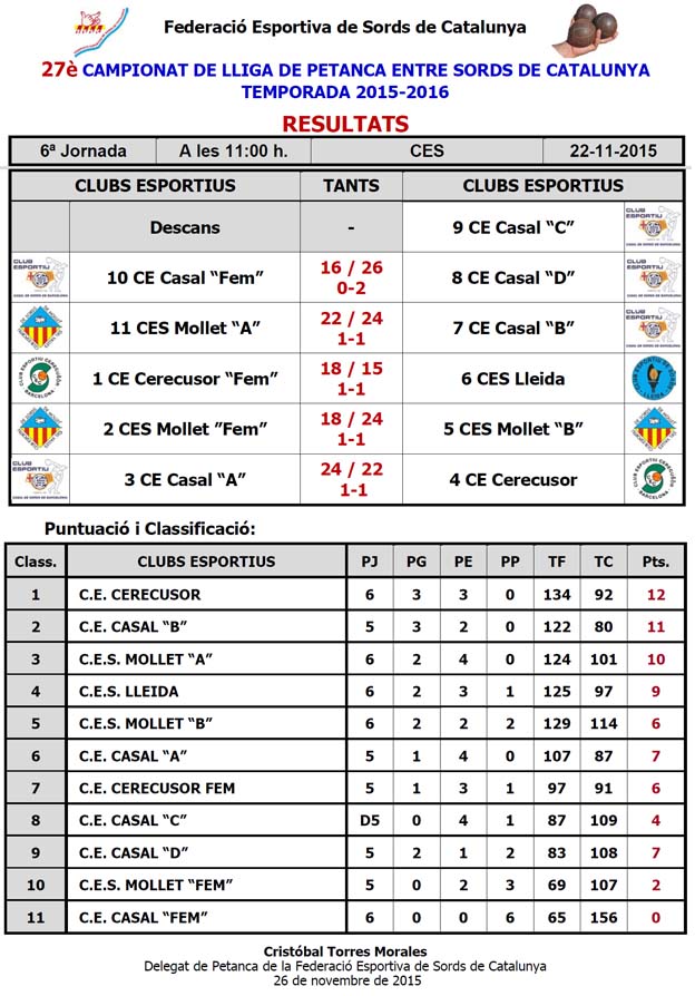 27è CAMPIONAT LLIGA DE PETANCA ENTRE SORDS DE CATALUNYA - TEMPORADA 2014-2015