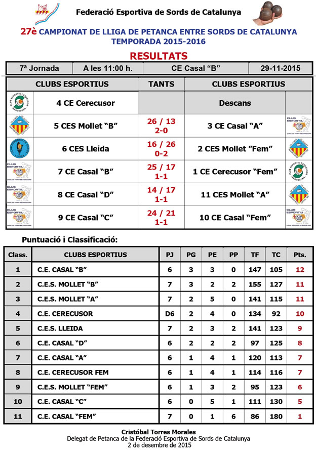 27è CAMPIONAT LLIGA DE PETANCA ENTRE SORDS DE CATALUNYA - TEMPORADA 2014-2015