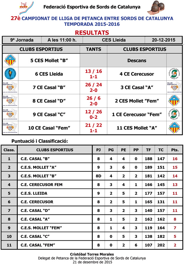 27è CAMPIONAT LLIGA DE PETANCA ENTRE SORDS DE CATALUNYA - TEMPORADA 2014-2015