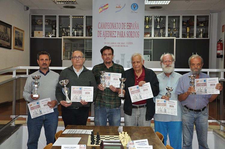 El 29 d'abril de 2017 es va celebrar del Campionat d'Espanya d'Escacs per a Sords amb els millors escaquistes d'Espanya amb la il·lusió posada en participar en els Mundials. L'escaquista cátala es va proclamar subcampió Sr. Andres Gonzalez del CES Lleida.